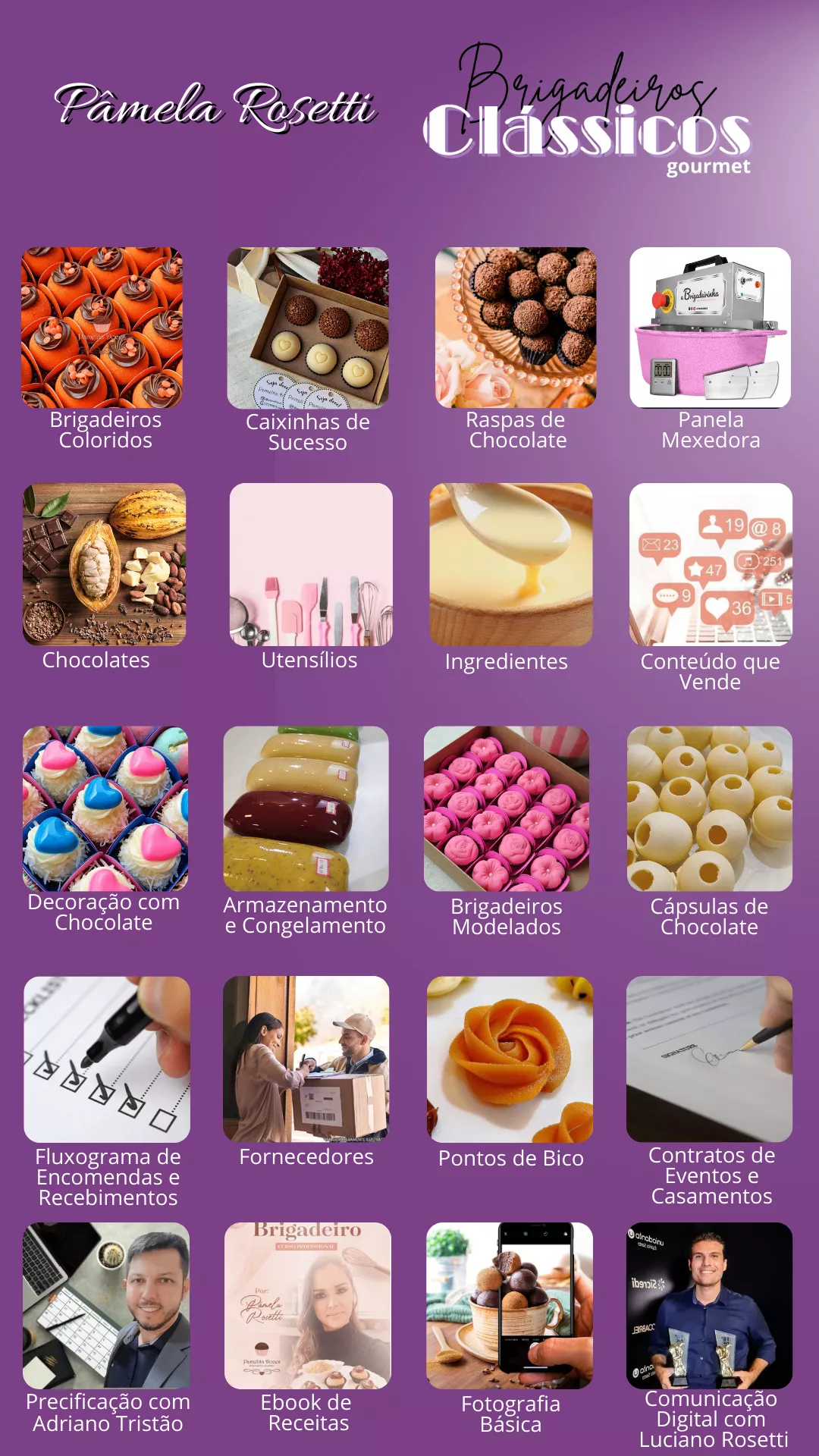 Um conteúdo perfeito para você se tornar profissional. Além das receitas gourmet consagradas... eu te entrego um conteúdo completo, para que você tenha um negócio lucrativo. E ainda vou te dar todo o suporte que precisar durante todo o curso.